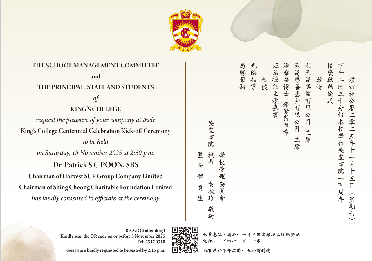 Address:King's College, 63A, Bonham Road, Hong Kong