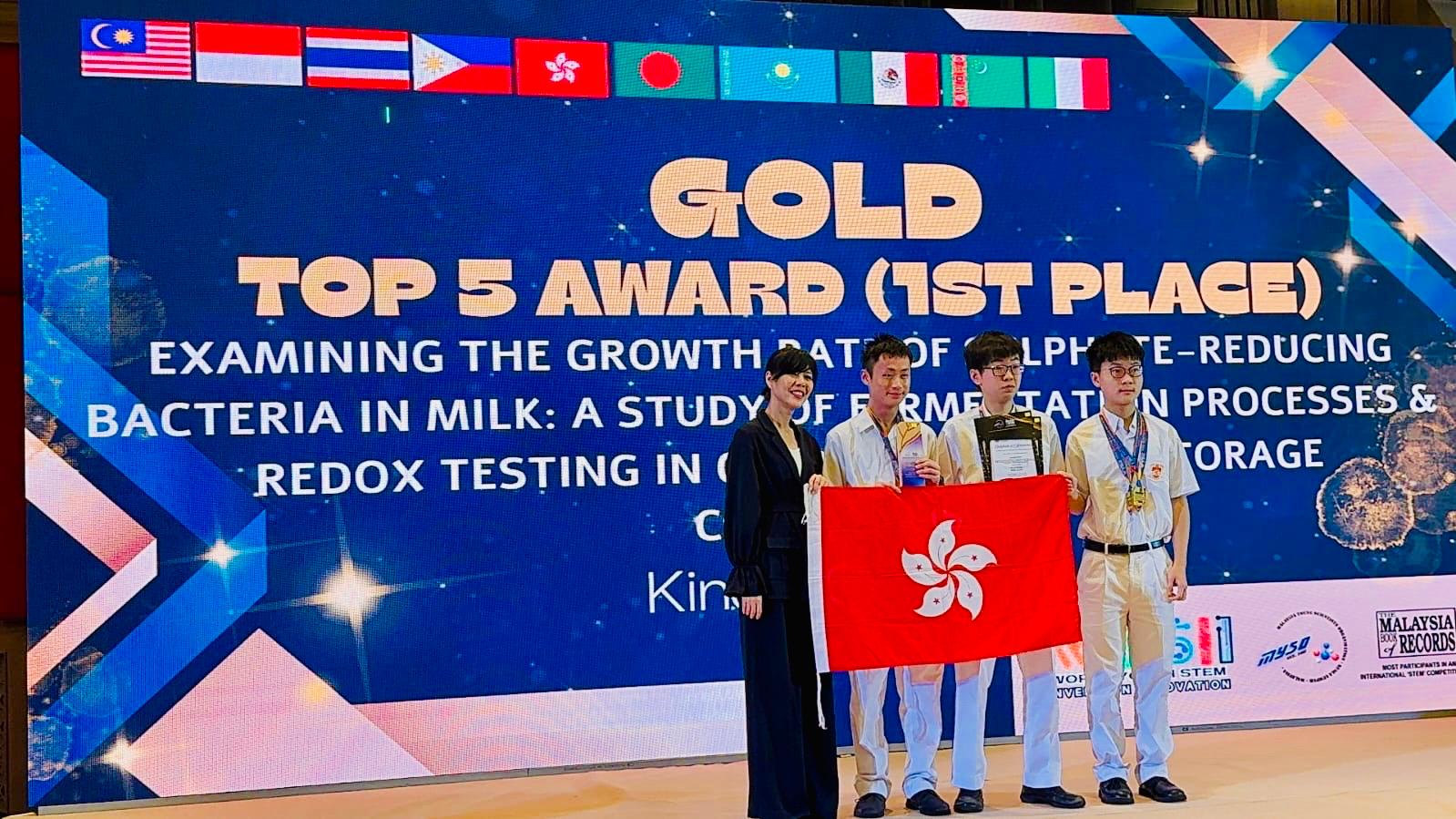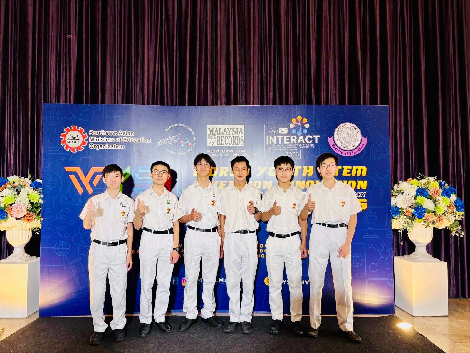 Congratulations to our S5 boys Gordon Tam, Brian Chan, and Marcus Cheung for claiming First Place in Physical Sciences and Applied Chemistry (ranking first among the Top 5 in the category), the Panel's Choice Award, and the Gold Award at the World Youth STEM Invention Innovation in Bangkok, Thailand, and to our S4 and S3 boys Jamin Ng, Isaac Lin, and Ricky Liu on their Gold Award!